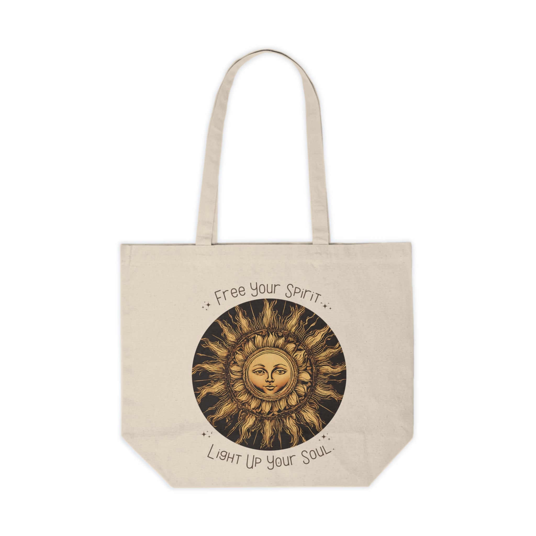 Free your spirit and light up your soul is an uplifting reminder to do what you love and enjoy life! Made from 100% 10oz cotton canvas, it is extremely durable and can withstand the wear and tear of everyday use. The design is simple yet elegant with two comfortable shoulder straps, making it easy to carry around. With its spacious and functional design, you can easily fit all your essentials without worrying about running out of space. So whether you're heading to the grocery store, the yoga studio, or the beach, this tote bag is the perfect accessory to carry along with you. *Handwash or gentle wash cycle with cool temperatures.