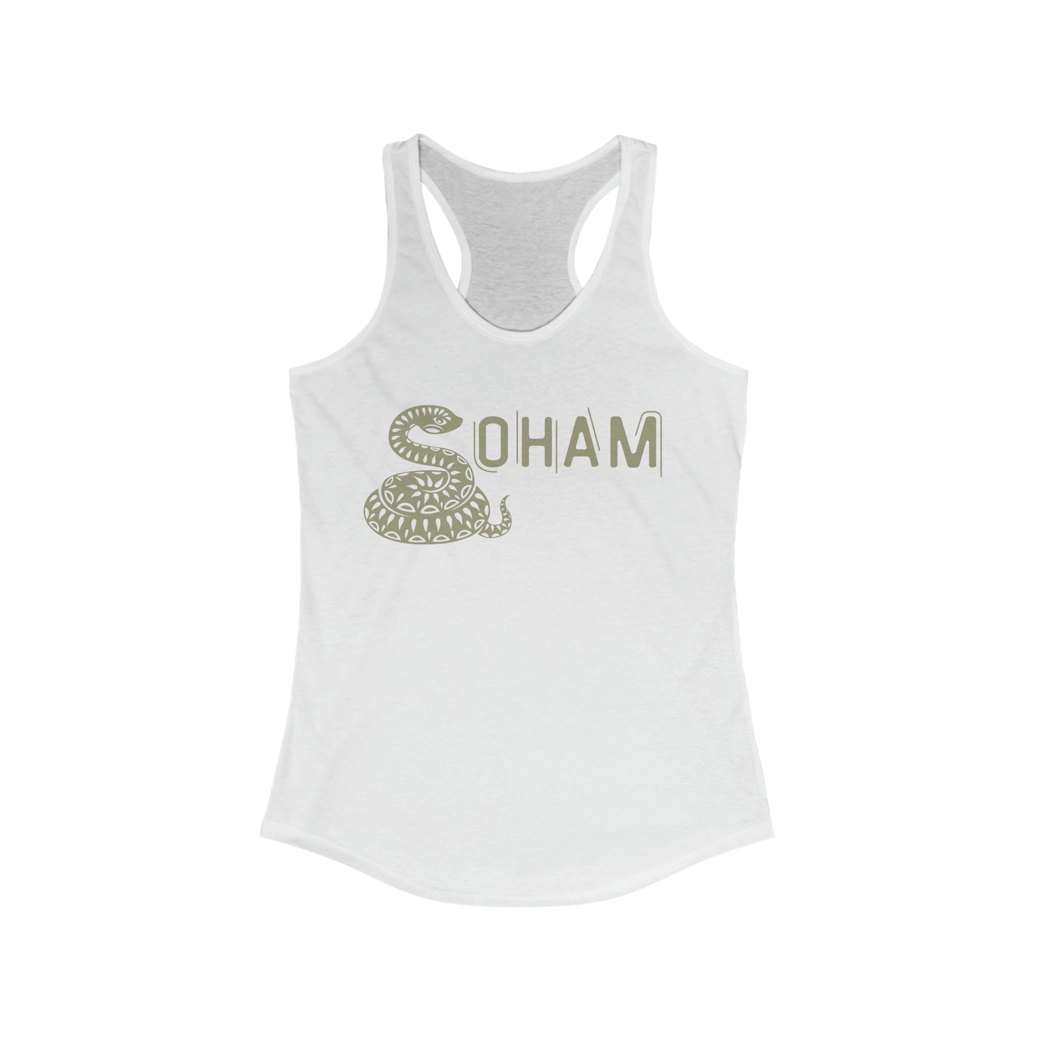 Soham is a yoga mantra pronounced so-hum, which means "I am that." Used often in meditation to bring clarity and harmony as one identifies oneself with their ultimate reality (that). This tanktop is perfect for a casual day, yoga class, heading to the beach and more. Material: 60% combed ring-spun cotton, 40% polyester. Extra light fabric